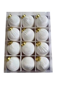 Velvet Christmas Baubles - White (12 pcs)